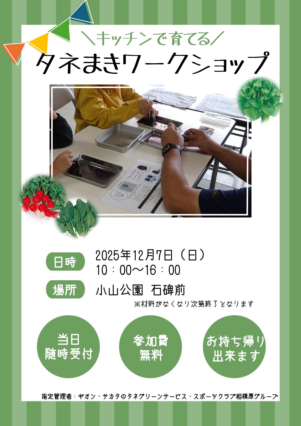 モルック体験会やコマ回し体験、種まきワークショップ、お菓子すくいを開催予定です。