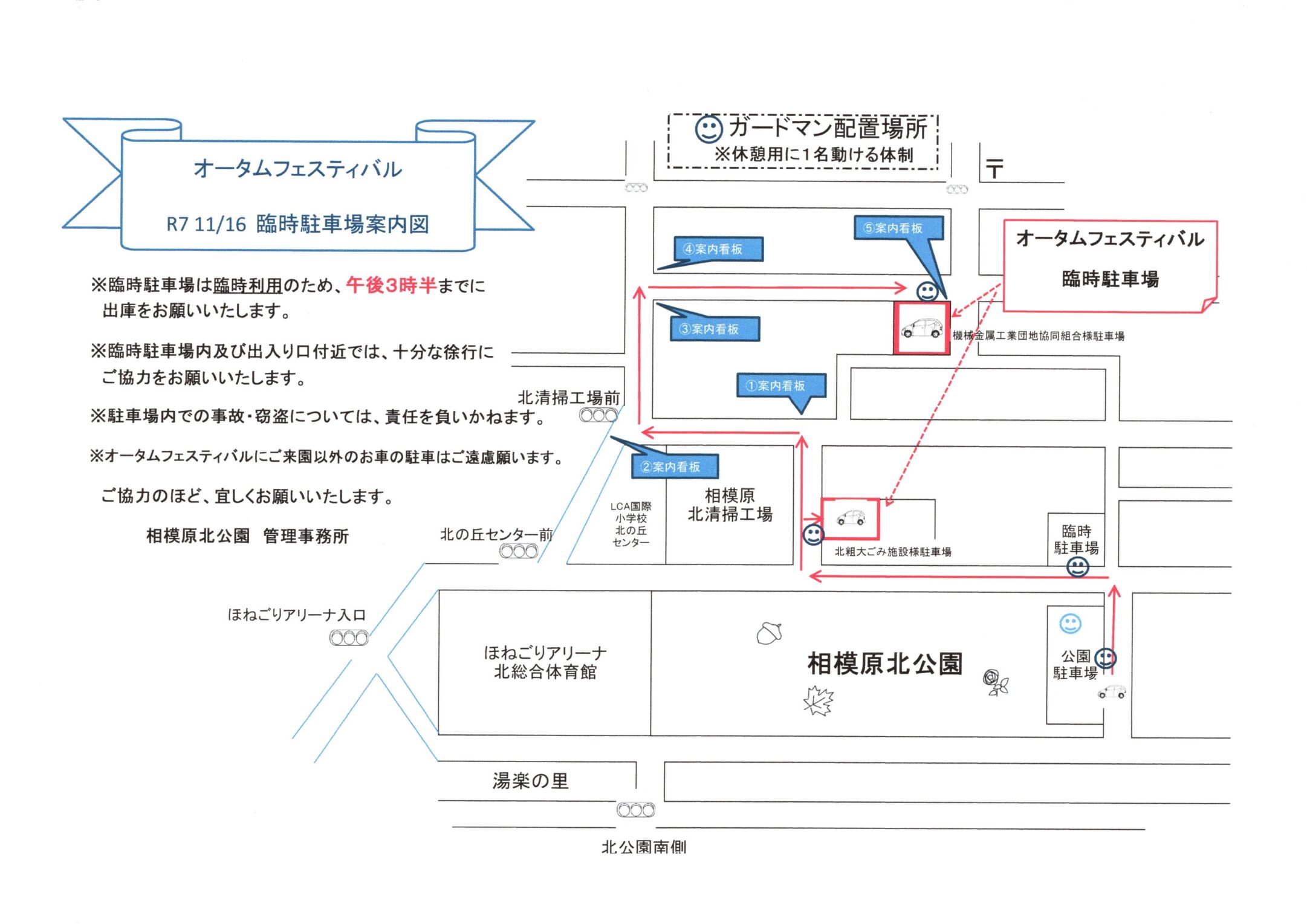 ※臨時駐車場は臨時利用のため、15:30までに出庫をお願いいたします。